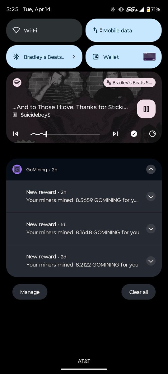 This is today's earnings from #Gomining Make another 8.8 tokens lowering the goal to max discount . #Mining