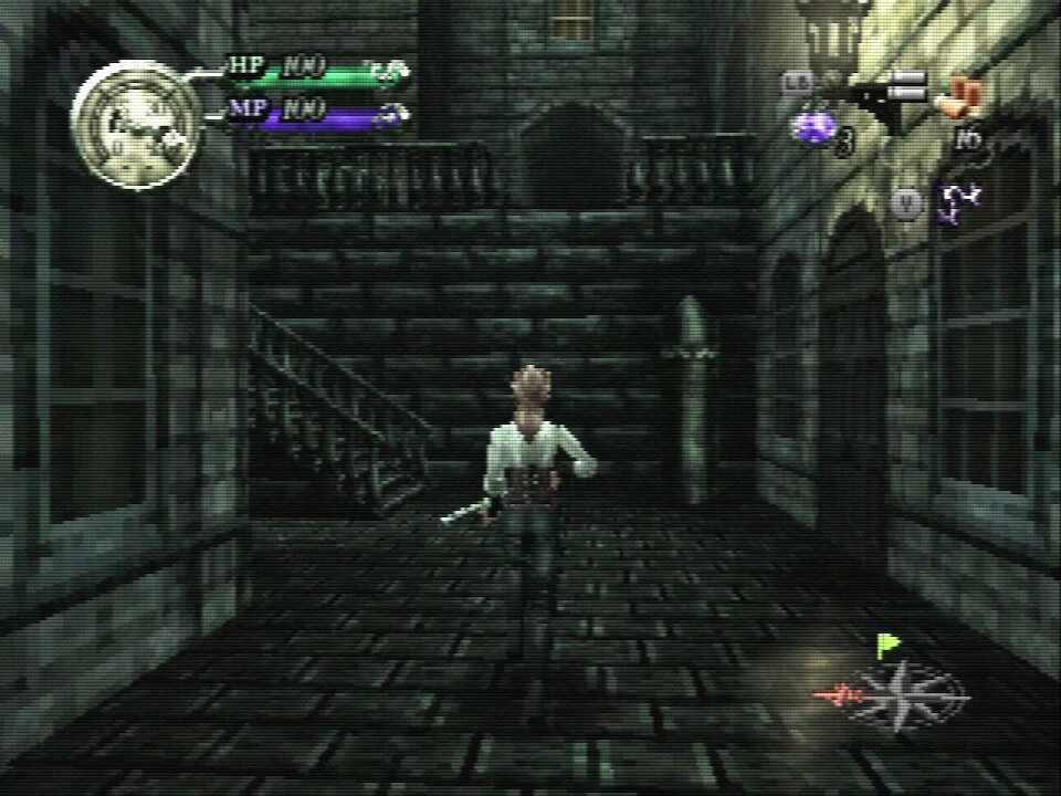 Building more of the world, I'm finding the room maps give away a little too much. Trying a compass instead - it switches to a stage map on the pause screen, showing visited rooms as squares and the connections between them. #GunmetalGothic #ScreenshotSaturday #GodotEngine