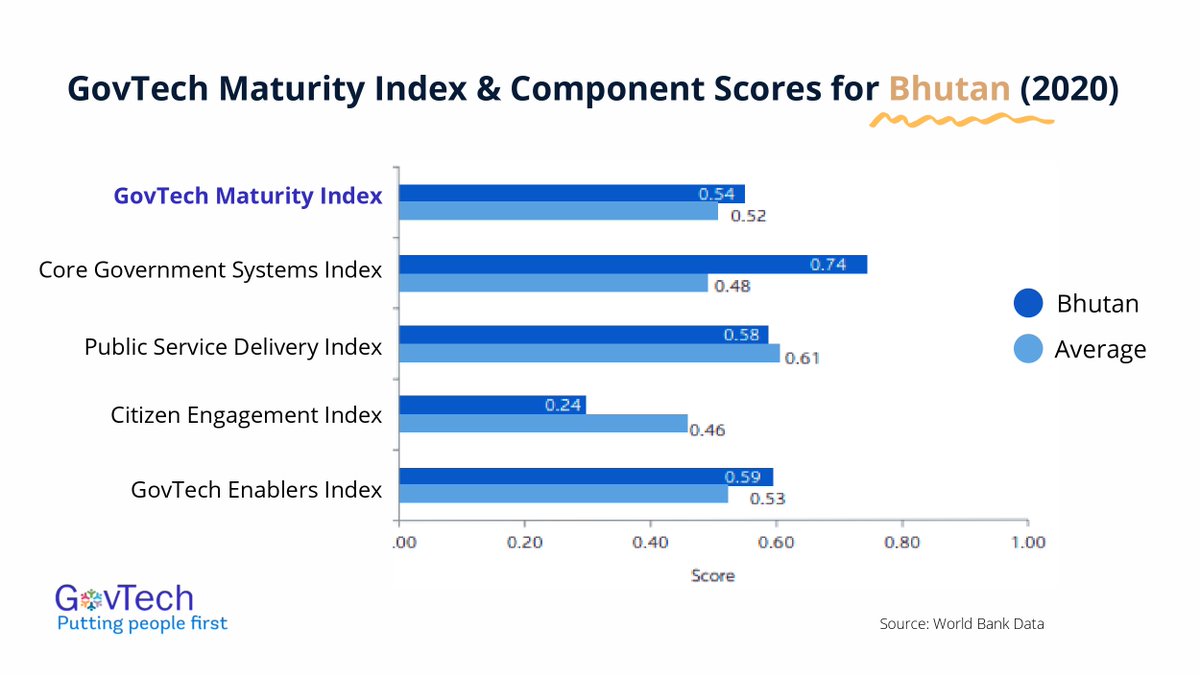 📌#GovTech_CountryCase #Bhutan🇧🇹 moved up 23 positions in the 2020 UN EDGI ranking due to significant improvements in #GovTtech foundations including expansion of 👇 📡internet access 📡online services 📡digital skills development Learn more: wrld.bg/WWkl50GFFSa