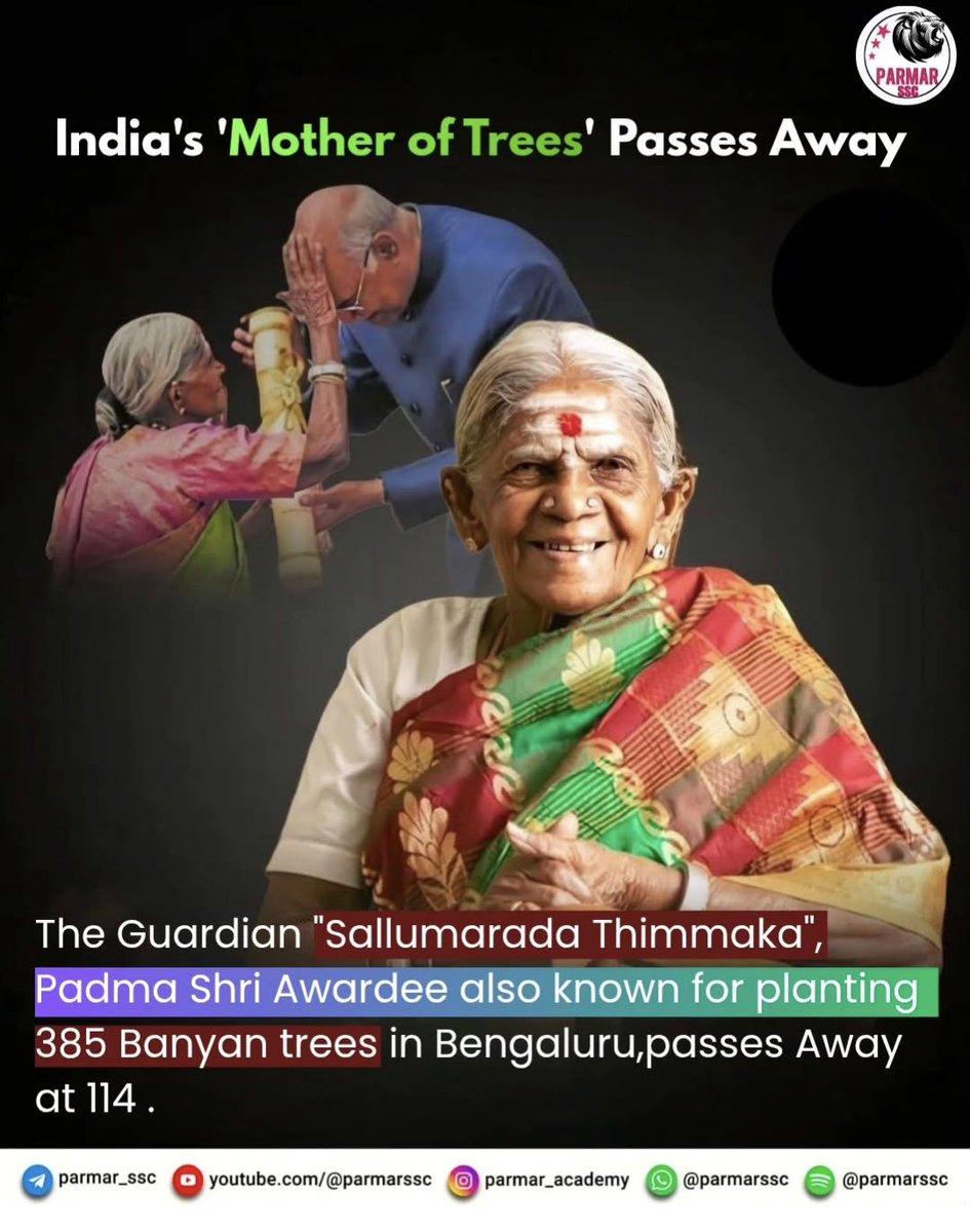 Turned heartbreak into a forest of hope- Saalumarada Thimmakka, the 'Mother of Trees,' leaves behind a green legacy that will breathe for generations.🌳🌴 #SaalumaradaThimmakka #GreenLegacy #MotherOfTrees #parmarsscgk