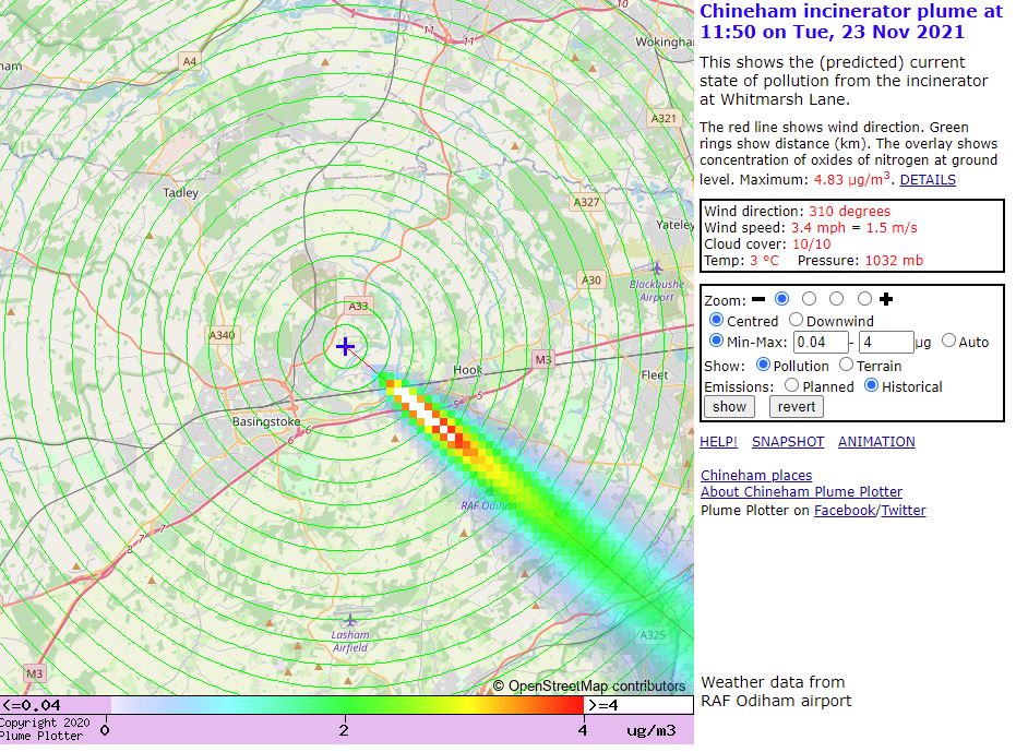 Latest Chineham incinerator plume plot, 15:50 18/01/24 #WaterEnd #Greywell #EastGreen plumeplotter.com/chineham/