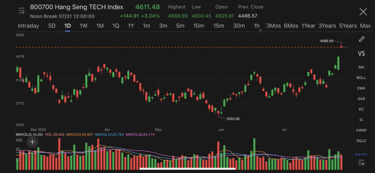 #HangSeng #Tech Index surged nearly 5% to hit 4,688.69 at one point, the highest in 6 months, before closing the morning session 3.2% higher. yuantalks.com/the-wire-live-…