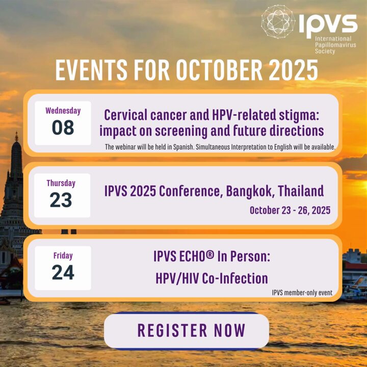Exciting month ahead for the IPVS community! 👉Cervical cancer and HPV-related stigma 🔗bit.ly/4nfTnYJ 👉 #IPVS2025 🔗ipvconference.org 👉 IPVS ECHO In-Person: HPV/HIV Co-Infection (IPVS member-only) #HPVresearch