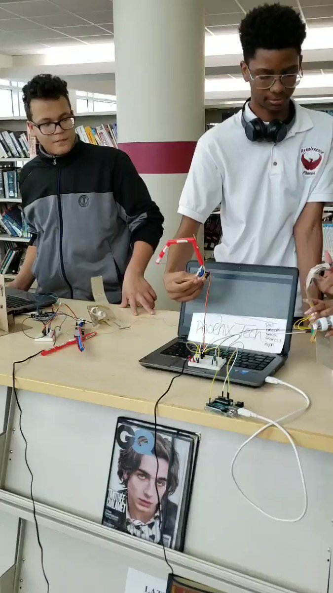 In just 3 hours our @Detroitk12 students created bionic hands with @arduinos. After looking at their final products, you'd never know they were first-time users of microcontrollers. #CSforDetroit #HackSTEM #CSWeek