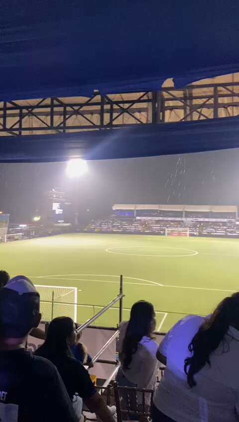 Momentos en que cae la lluvia 🌧 y el Estadio Nacional queda a oscuras 💦 El partido entre #Nicaragua 🇳🇮🆚️🇭🇹 #Haití se encuentra suspendido. #9Octubre #FIFAWorldCup