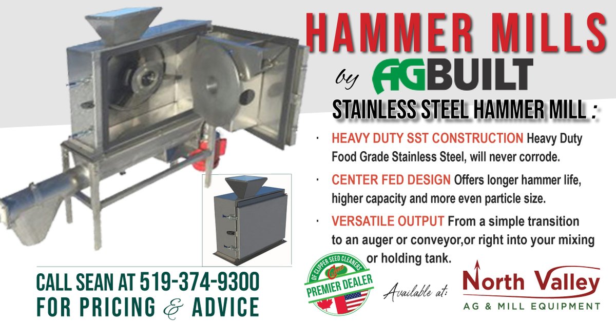 Another Hammer Mill, this post featuring the low maintenance AGBUILT Hammer Mill of today. With stainless construction, the AGBUILT Hammer Mill will stand the test of time grinding product day in and day out. Let me, Sean, quote you today. Call me at 519-374-9300 #hammermill
