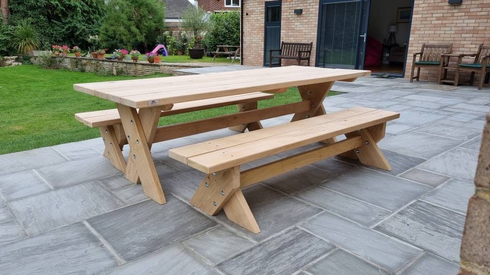 Patio Furniture, Outdoor Furniture ,Oak Table, Outside Picnic set, Garden furniture, Handmade furniture, Wood furniture, 3 metre Table tuppu.net/53439bd5 #HandmadeTable