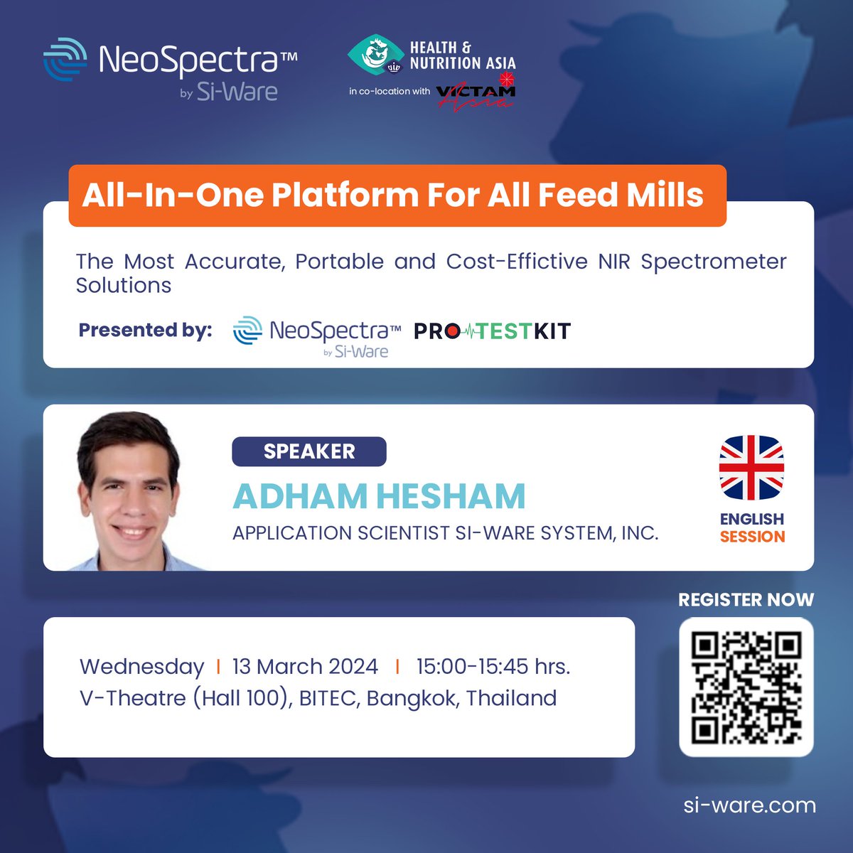 Join our Application Specialist, Adham Hesham, at Health and Nutrition Asia, for an enlightening seminar session on the most accurate, and cost-effective NIR spectrometer solutions for on field analysis. . ✨ Don't miss out #VictamAsia2024 #NIRSolutions #HandheldSpectroscopy