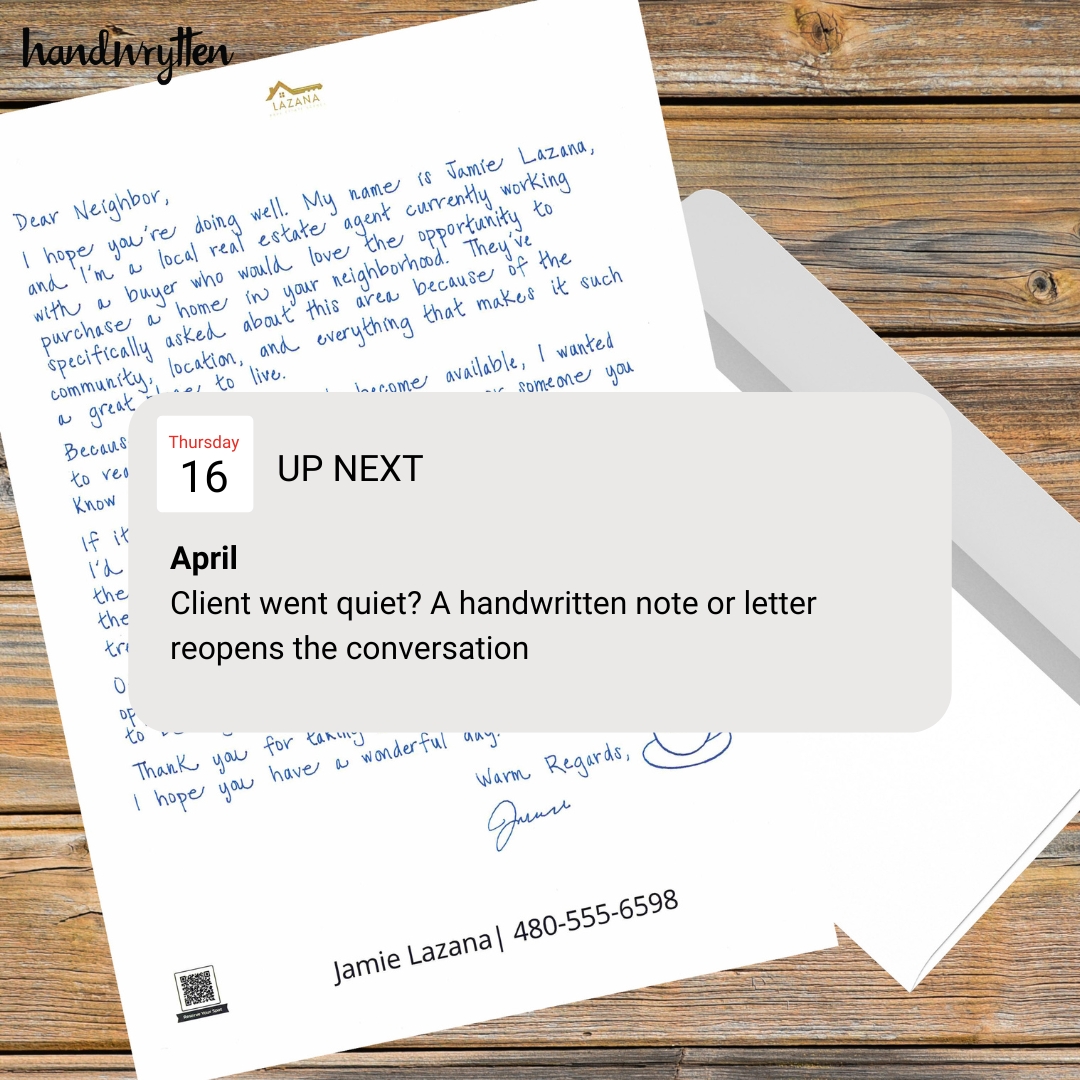 Crickets from a client? 🦗Skip the follow-up email overload. Send a handwritten note and watch the conversation come alive. Start reconnecting → handwrytten.com #CustomerRetention #Handwrytten #ThoughtfulOutreach #ClientCare #BusinessDevelopment