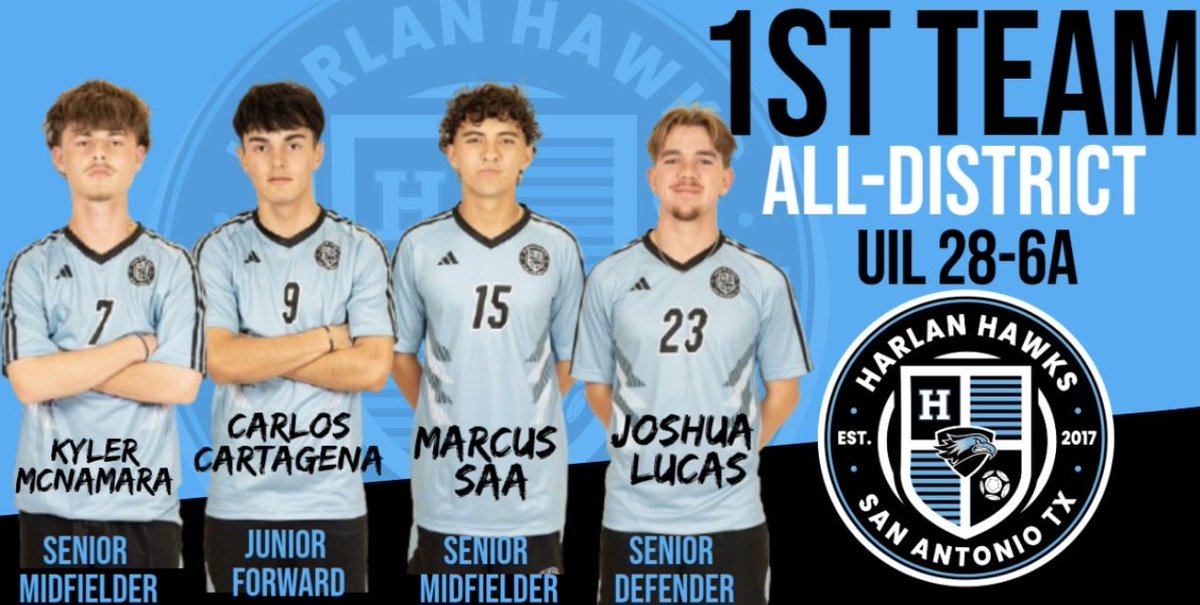 We are so proud of our HAWKS!!! 1st Team All-District Selections Below⬇️ #HawkYeah #Dale @NISDHarlan @NISD_Athletics @harlanhawkmedia @6a_28 @Soy_SAF @SATXSoccer @tascosoccer @50_50Pod @hinojosa_david