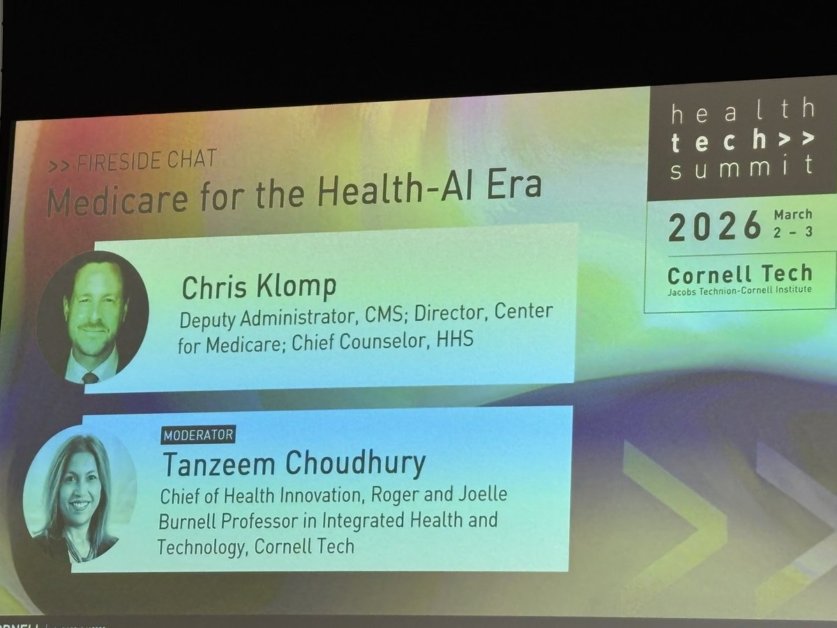 Chris Klomp from @CMSGov says, “It is a grave mistake to assume that #AI is the savior of healthcare or that it’s going to disrupt the way we think it will.” We look forward to hearing more about how AI will impact healthcare & how we can harness it at #HealthTechSummit.