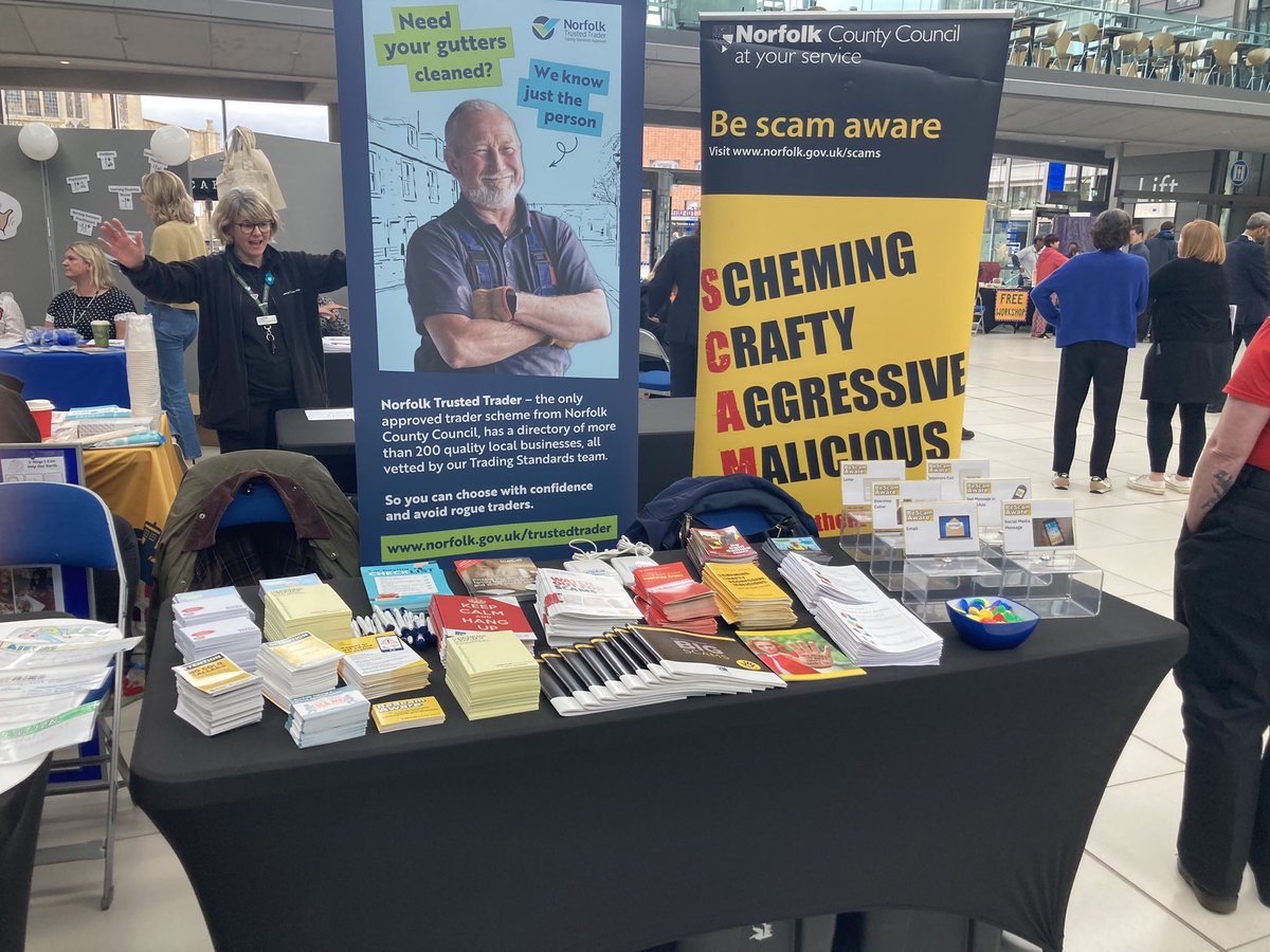 All set up for @OpeningDoorsLD #HealthyHappySafe event taking place in @TheForumNorwich today. If you’re in #Norwich today head on in for loads of great information & advice #scamawarenorfolk