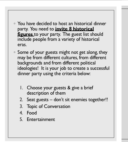 About to start some Revision with 3rd yrs. To get them thinking about key figures we host an historical dinner party - seat key figures carefully, don't have Castro beside JFK etc. always a hit! They present in any format of their choice - video, ppt, poster. #histedchat