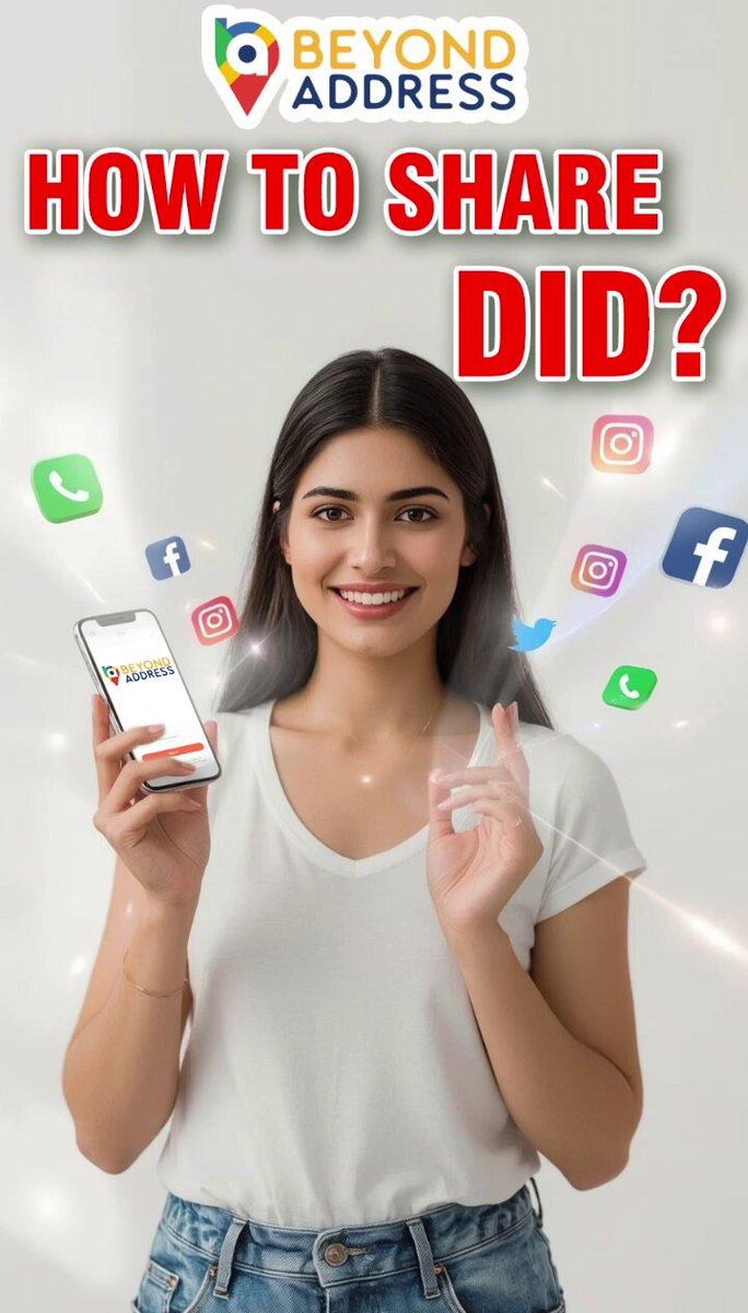 Sharing your Beyond Address DID is super simple 💡 One tap → share to WhatsApp, Insta, FB & X! #BeyondAddress #HowToShareDID #DigitalAddress #SmartLocation #MadeInIndia #beyondaddressapp