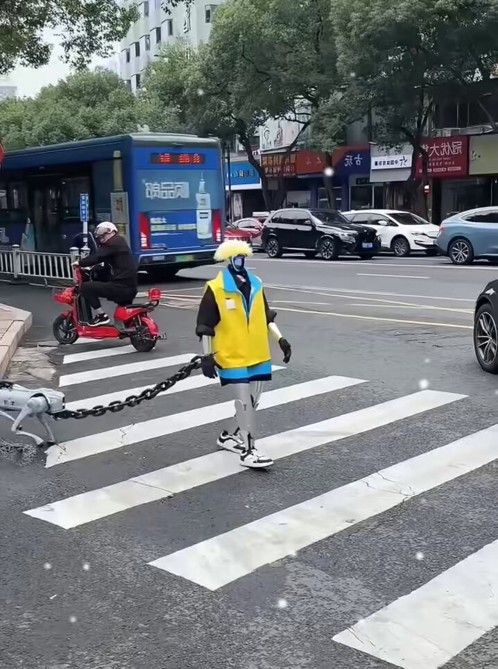 A robot walking a robot dog — now that’s a sight to see! 🐕🦺😂 Welcome to the future… where even dog walks have gone high-tech! ⚙️✨ #Robot #RobotDog #HumanoidRobot #ai