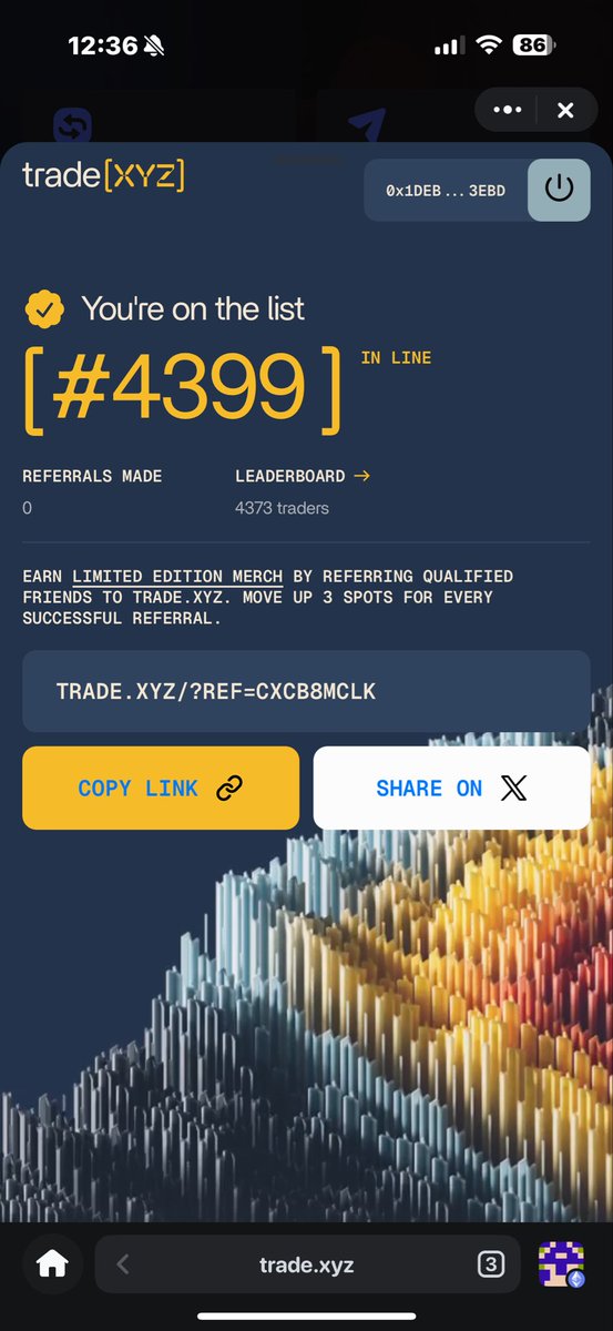 Join whitelist แพลทฟอร์มเทรดหุ้นเมกาของ @unitxyz ต้องมี vol บน hyperliquid เกิน 5 ล้านดอล นะครับ ถึงสมัครได้เช็กต้นทางที่ @unitxyz ได้ ฝาก ref ด้วยฮะ trade.xyz/?ref=AXIJXRPOK