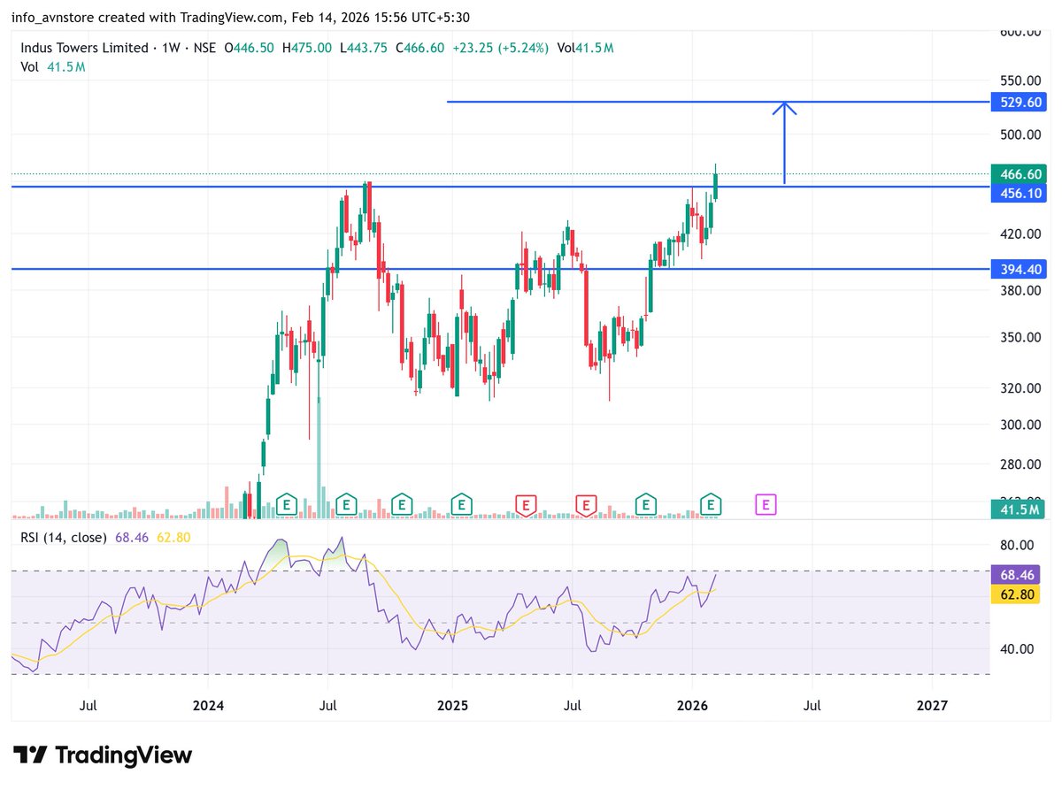 #INDUSTOWER CMP-470 Now all eyes on weekly close. If it sustains above the range → acceptance → fresh expansion move likely. Strong base + volume at highs = potential trend continuation. #Happytrading