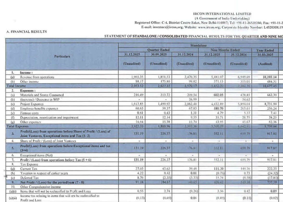 #IRCON Intl Q3 net profit up 16% on higher margins; revenue dips; dividend declared @jpullokaran cnbctv18.com/market/earning…
