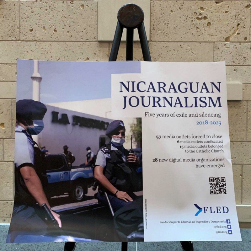Exposición de @cefeche en #ISOJ2023 sobre el trabajo del periodismo en el exilio, el recuento de la reprensión, la confiscación y la persecución a la prensa independiente por parte de la dictadura de Nicaragua. @FLED_ong