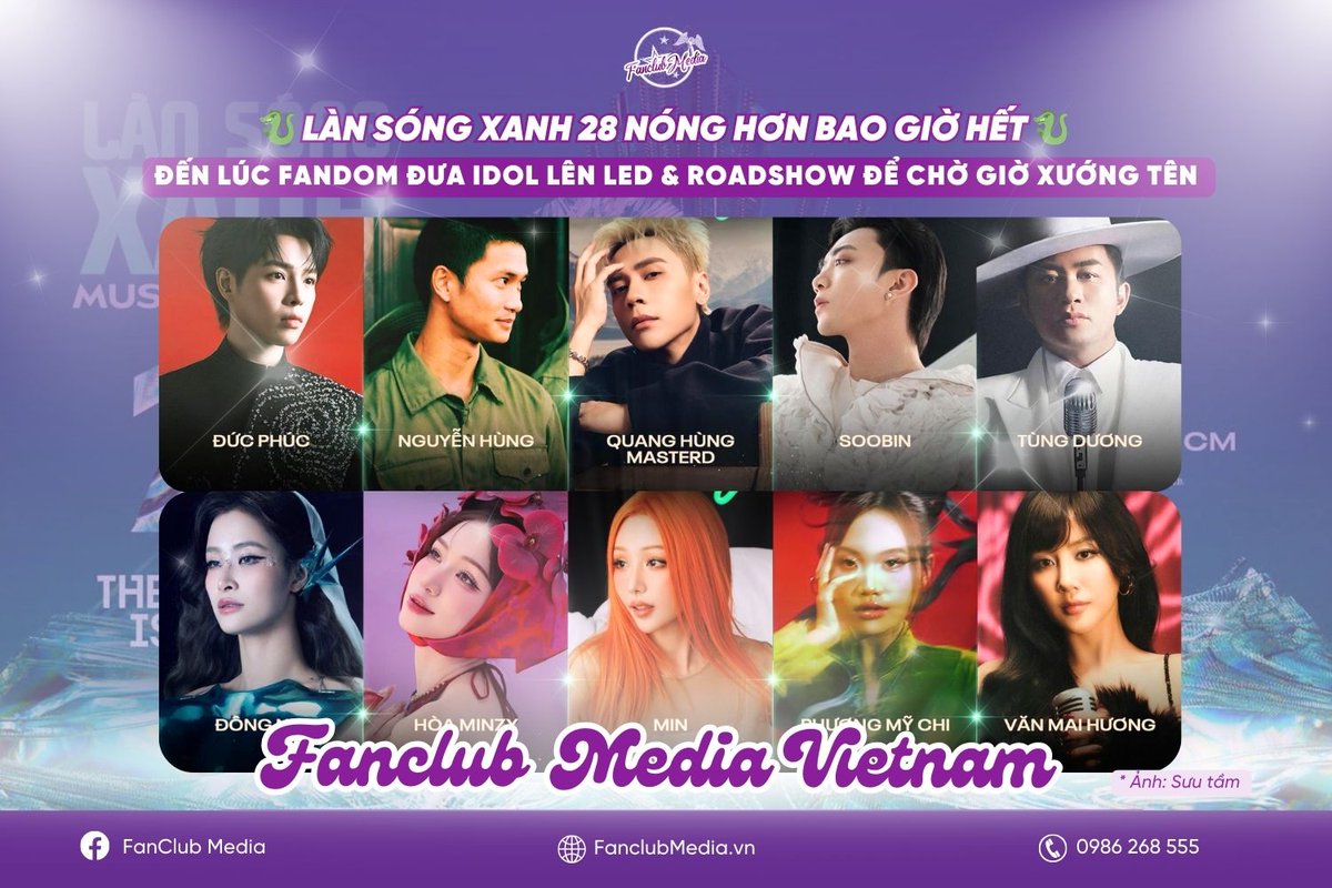 🐉✨ LÀN SÓNG XANH 28 NÓNG HƠN BAO GIỜ HẾT - ĐẾN LÚC FANDOM ĐƯA IDOL LÊN LED & ROADSHOW ĐỂ CHỜ GIỜ XƯỚNG TÊN #FanClubMediaVietnam #IdolAdvertising #ĐứcPhúc #NguyễnHùng #QuangHùngMasterD #TùngDương #Soobin #HòaMinzy #PhươngMỹChi #ĐôngNhi, #Min #VănMaiHương