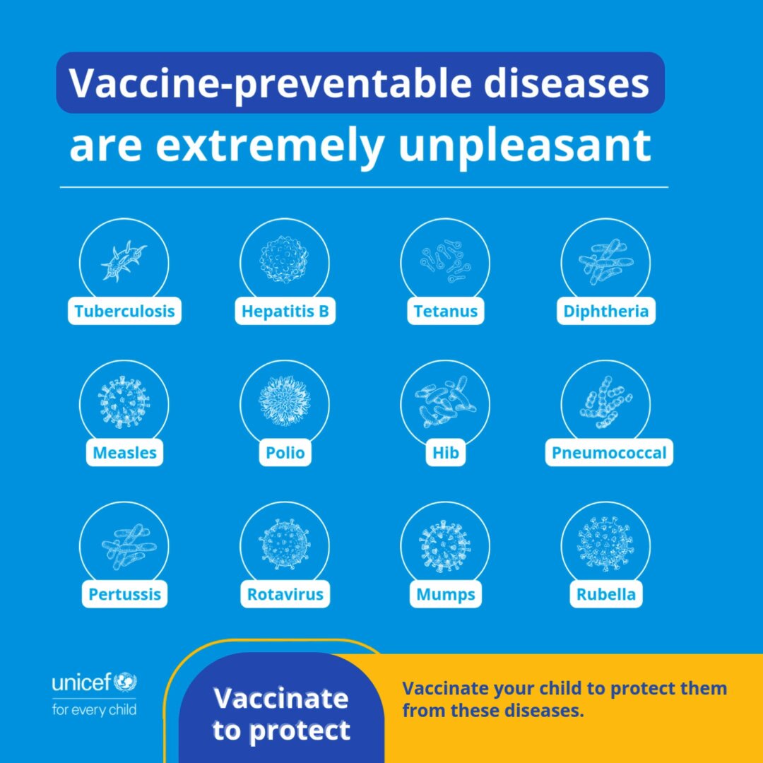 Not all vaccine-preventable diseases are the same, but all are harmful to children. Some can be deadly, others cause lifelong disabilities or complications. Protect your child – ensure they get all recommended vaccines on time. #ImmunizationWeek #VaccinesSaveLives