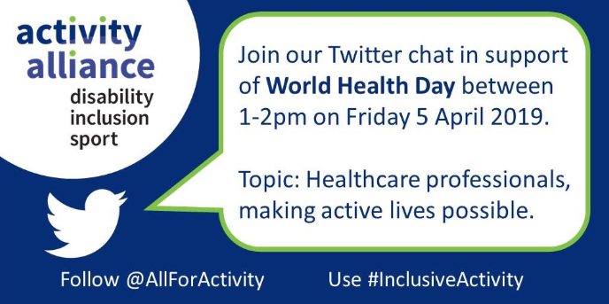 Yesterday @AllForActivity launched a new film, in partnership with us, aiming to help healthcare professionals support disabled people to be active. Join them for a Twitter chat today 1-2pm. to discuss this further. #InclusiveActivity