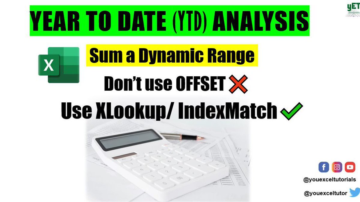 This video👉 youtu.be/s7SWbVgi5y4 describes YTD analysis, the difference between #YTD and #YoY and how to sum a dynamic range with #IndexMatch and #Xlookup. Please share, like and follow. Thanks! #microsoftexcel #msexcel #financialanalysis #youexceltutorials #Excel
