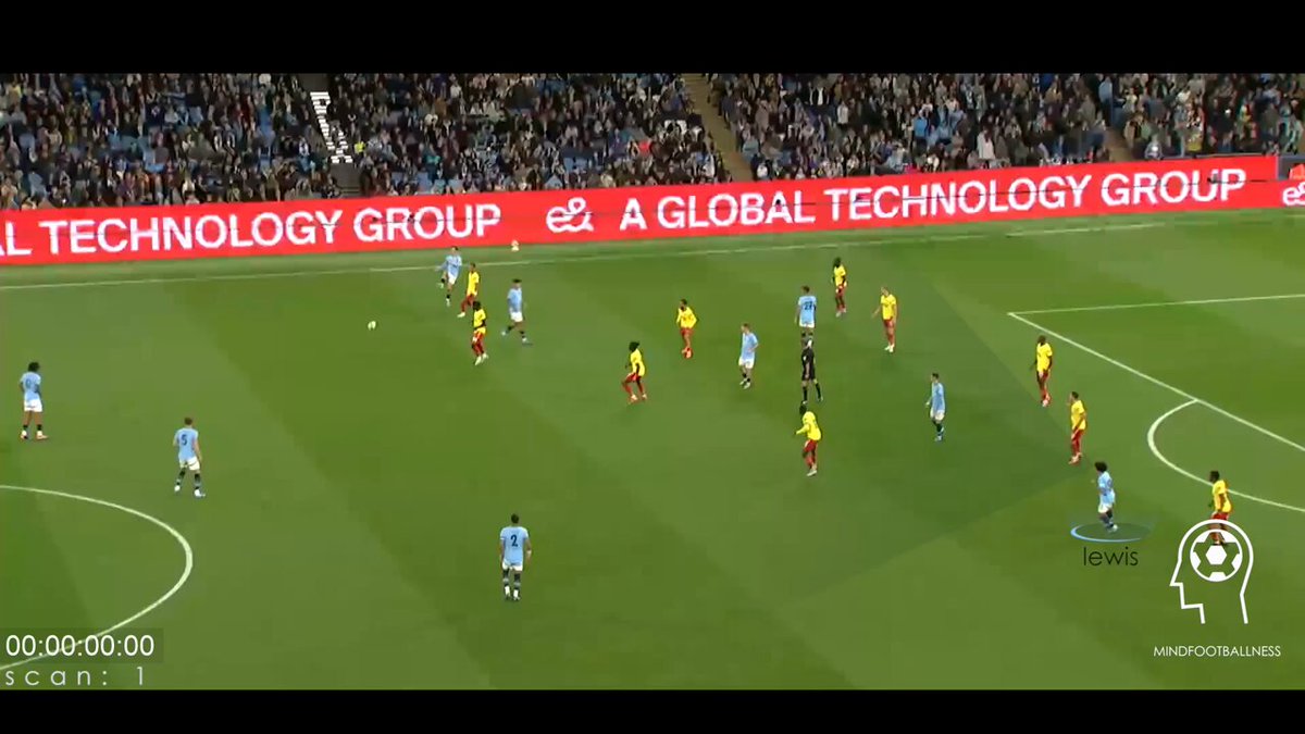 Rico Lewis - a concept of "half-space midfielder." Rico is a player with fantastic perceptual skills - able to achieve 0.9 scan/sec in 10 seconds before getting into possession. #individualdevelopment @slawekmorawski via @mfbnTV