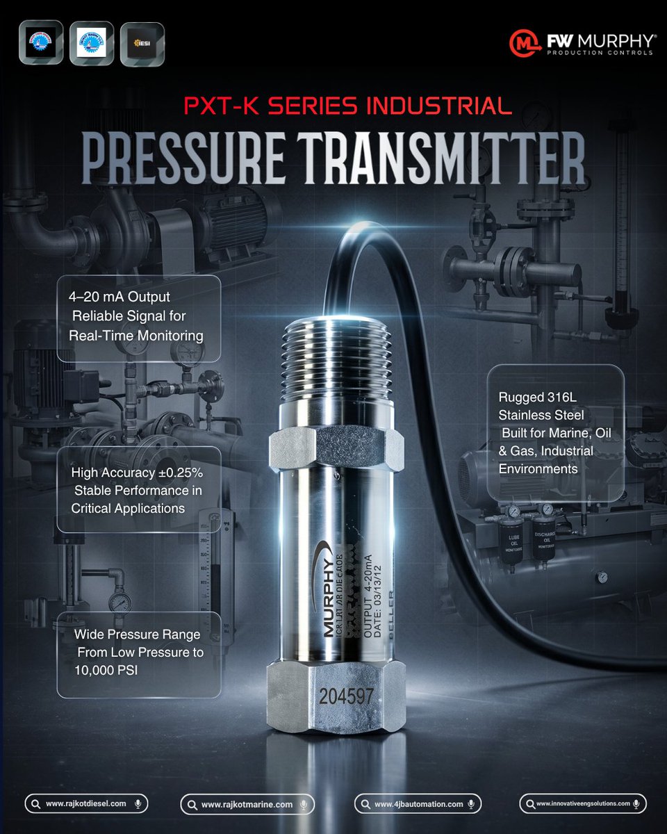 When pressure fails, operations stop. PXT-K Series Pressure Transmitter delivers reliable performance in marine & industrial environments. 316L SS | ±0.25% accuracy | Up to 10,000 PSI | 4–20 mA Built for zero downtime. Let’s talk 👇 #IndustrialAutomation #Marine #OilAndGas