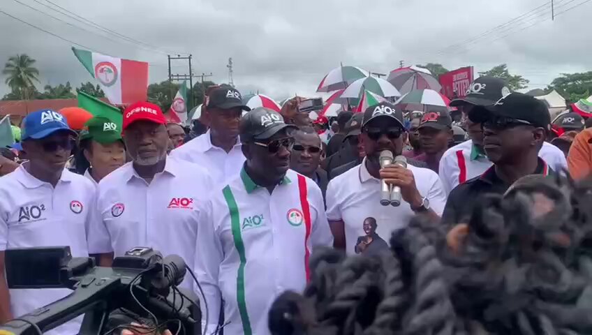 Governor Godwin Obaseki commissions the newly constructed 30km Sobe-Sabongida Ora Road in Owan West LGA. The arrival of the PDP Campaign train in Owan West is a testament to the progress being made. #Obaseki2024 #EdoPDP #InfrastructureSuccess