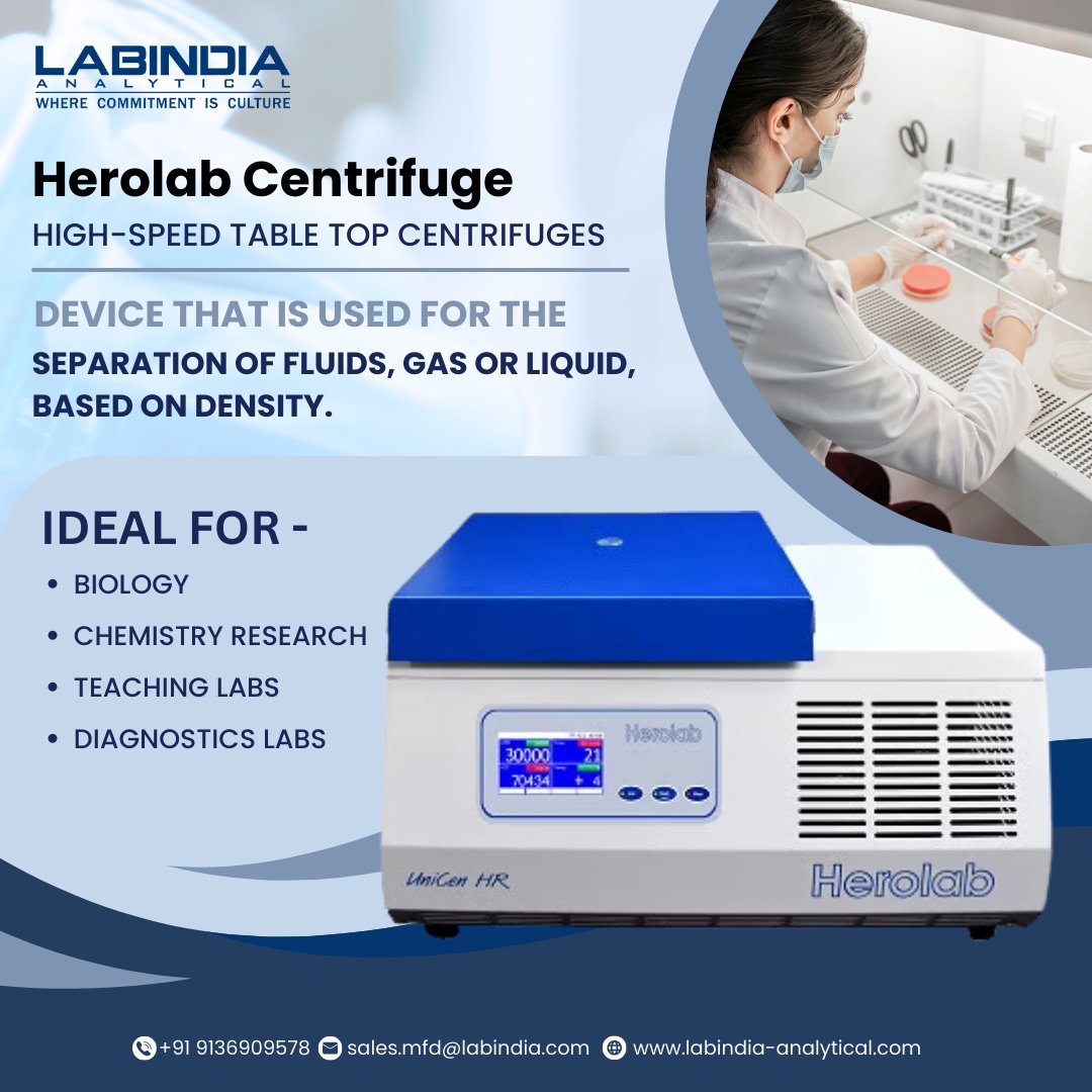 Herolab- The Blue Line centrifuge is a lab instrument for the density-based separation of fluids, gas, or liquid. To Know More - labindia-analytical.com/product/life-s… #labindia #interscience #herolab #lifescience #Pharmaceutical #Pharma #BioChemical #Clinical #Lab #laboratory