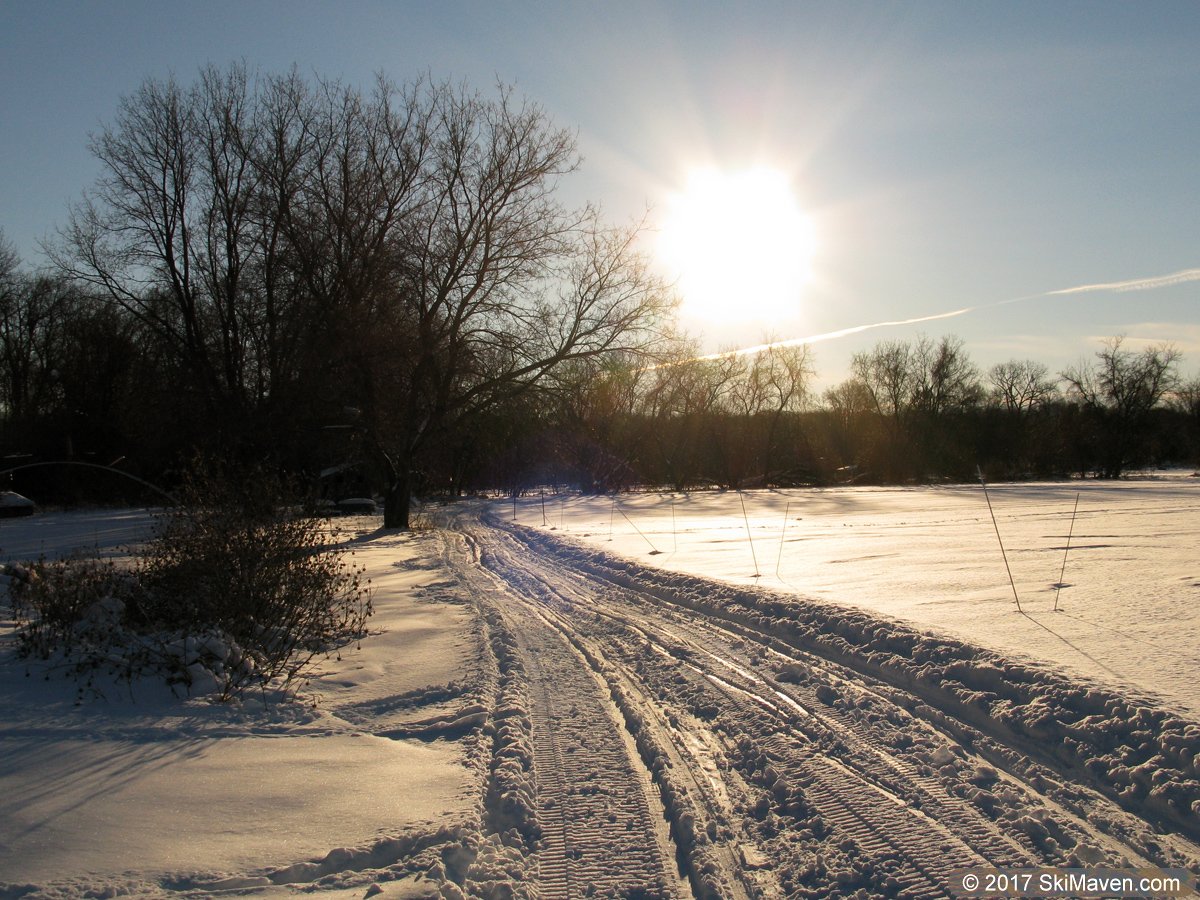Pre-work ski in Burlington's Intervale this morning. Soaking up the sun. Nice to have snow in #BTV! #xcski #intervale #nordic #vermont