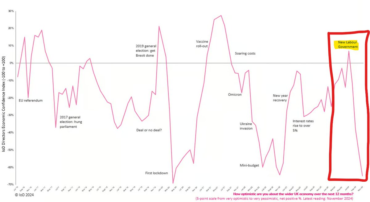 "Labour is now the party of business" - latest The Institute of Directors #IoD asked its members how optimistic they are about the UK economy over the next 12 months... 👇 source: iod.com/news/uk-econom…
