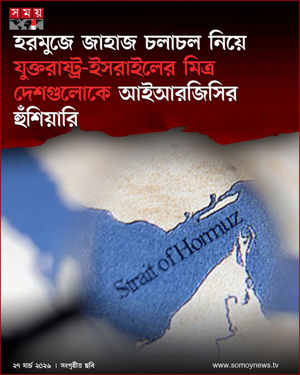 পারস্য উপসাগরের হরমুজ প্রণালী দিয়ে জাহাজ চলাচল নিয়ে যুক্তরাষ্ট্র ও ইসরাইলের মিত্র ও সমর্থনকারী দেশগুলোকে হুঁশিয়ারি দিয়েছে ইরানের সামরিক বাহিনীর প্রভাবশালী শাখা ইসলামিক রেভল্যুশনারি গার্ড কোর (আইআরজিসি বিস্তারিত : somoynews.tv/news/2026-03-2… #HormuzStrait #IranWarning