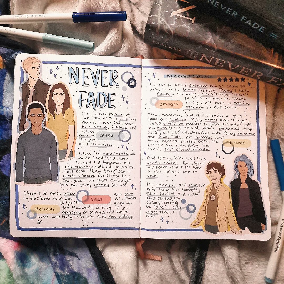 Haven't shared any of my reading journal spreads here yet so here's the one I did for Never Fade 😍 #readingjournal #journalspread #thedarkestminds