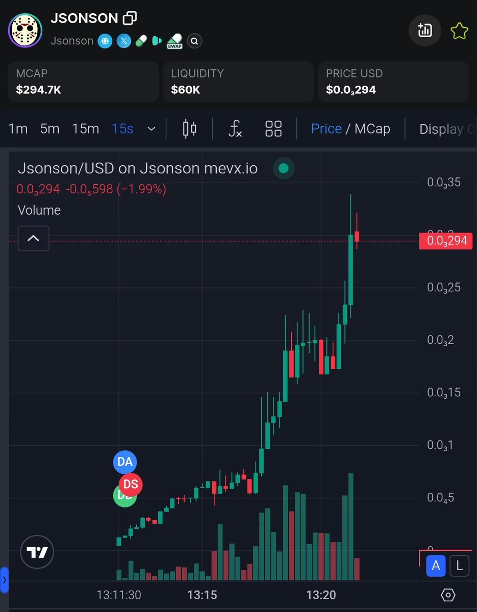 💎 Vip call Updates. > Jsonson - #SOL 🟣 #Jsonson 4x From Premium call.🚨 🚀Ca: 7JJZqefmRf2nrRSGE5DR8JZ8D9L8oiVXzXz4Mykipump 💹Now Marketcap: $67,645.15 To $303,057.48 📈Chart: mevx.io/solana/7JJZqef… 🌐 Socials: ↓↓ ├ Web: google.com/search?q=dexsc… ├ (X):