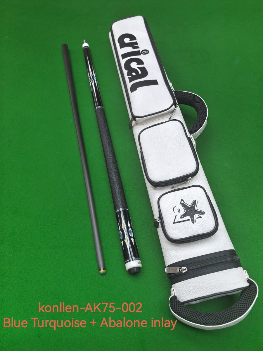 KONLLEN AK75-002 シリーズのプールキューは、メープル材と航空グレードのカーボンファイバーを組み合わせて、たわみを減らし、剛性を高め、比類のないパフォーマンスを実現します。ターコイズとアワビのインレイが、水面に映る月明かりのような優雅な雰囲気を醸し出し、控えめで贅沢です。 #konllen