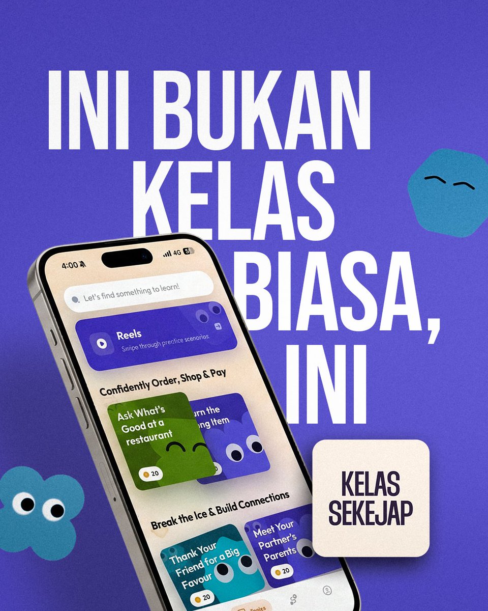 Introducing Kelas Sekejap! ๐จ๐ปโ๐ซ Belajar bahasa Inggeris dengan lebih senang, pantas dan seronok bersama @Khairykj dan @ShahrilHamdan ๐กApps yang dipower oleh AI & pertama di Malaysia menggunakan pembelajaran 'Learn by Talking' Download sekarang di App Store & Play Store! #KSLagi