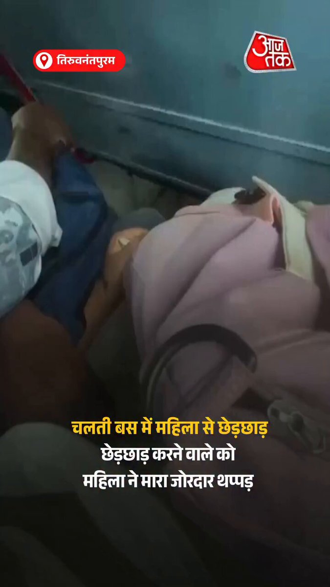 चलती बस में महिला से छेड़छाड़ करने वाले को महिला ने मारा जोरदार थप्पड़ #Thiruvananthapuram #KSRTCBus #KeralaNews #WomenSafety #Harassment #ViralVideo