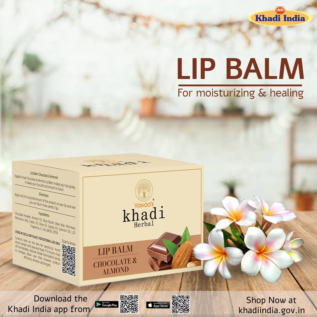 100% natural and non-sticky lip balm heals chapped lips, leaving them replenished, soft and hydrated. A nourishing blend of Chocolate & Almond. On khadiindia.gov.in, the official online shopping website of Khadi India. #lipbalm #khadiindia #KVIO #KVIC #msme #KVICChairman