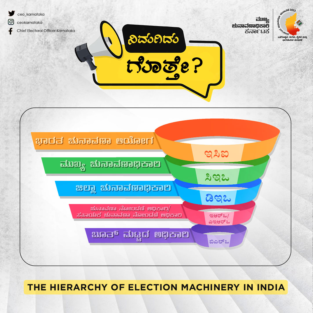 A brief presentation of the hierarchy of election machinery in India. #karnatakaelections2023 #karnatakaassemblyelection2023 #ecisveep #ceokarnataka #votingcounts #karnatakaelections2023 #votingmatters #responsibility