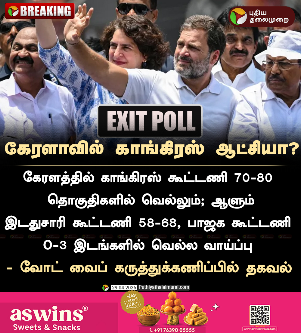 Axis My India के Exit Poll में Kerala में UDF को भारी बढ़त ◆ LDF 49-62 ◆ UDF 78-90 ◆ BJP+ 0-3 ◆ Oth 0 Kerala Exit Poll | Exit Poll | #ExitPoll | #Kerala | #UDF | #LDF | #AxisMyIndia #ElectionResults