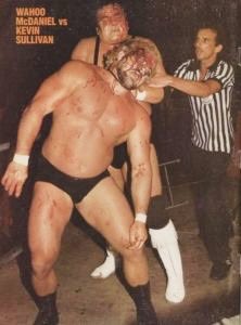 Wahoo McDaniel vs. Kevin Sullivan, Bill Alfonso is the referee. #WahooMcDaniel #KevinSullivan #BillAlfonso #prowrestling