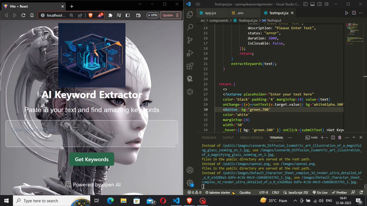 Day 8 :Just created my very own AI keyword extractor thanks to the amazing tutorial by Traversy Media! It's incredible what you can achieve by learning from the best.@traversymedia #AI #keywordextractor #100DaysOfCode