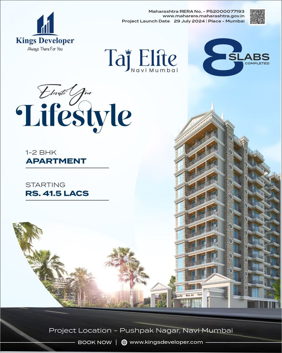 Live the elite life in the heart of Navi Mumbai! 🏢 1 & 2 BHK luxury homes at Taj Elite starting @ ₹41.5 Lacs. #TajElite #KingsDeveloper #NaviMumbaiHomes #UrbanLiving