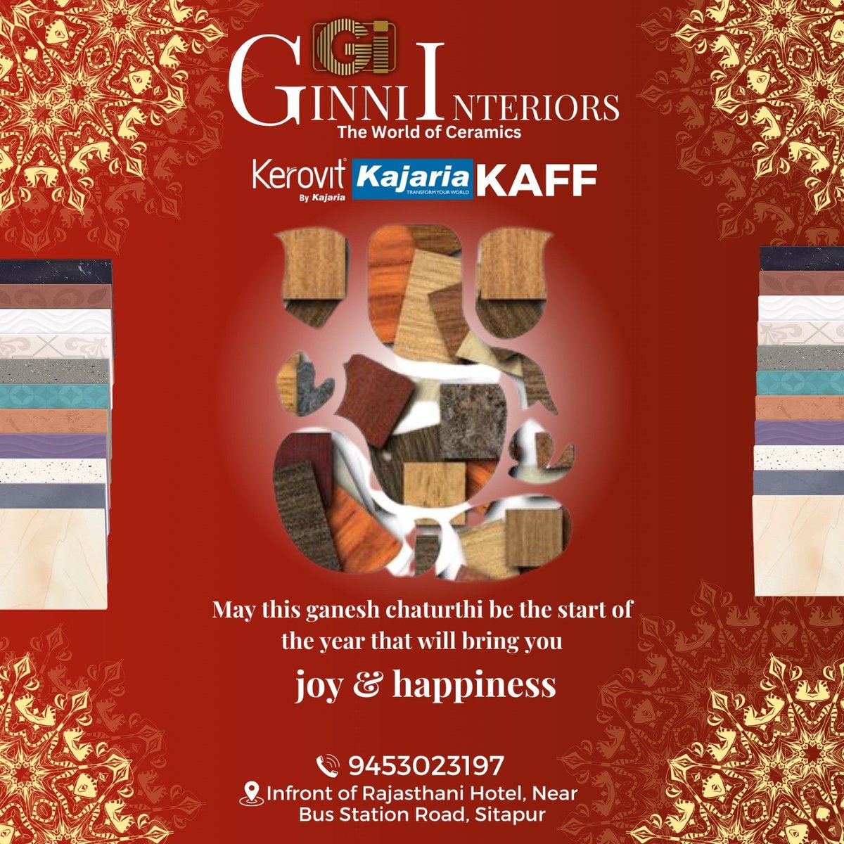 May this Ganesh Chaturthi be the start of the year that will bring you Joy & Happiness😊 ✅SHOP NOW Ginni Interiors-Bindal Brothers Call Now☎️ Contact Us :- 9453023197 #GinniInteriors #Kajariatiles #kitchenapplication #Hardwarefitting #SanitaryBathware #bestdecor #homedecoration