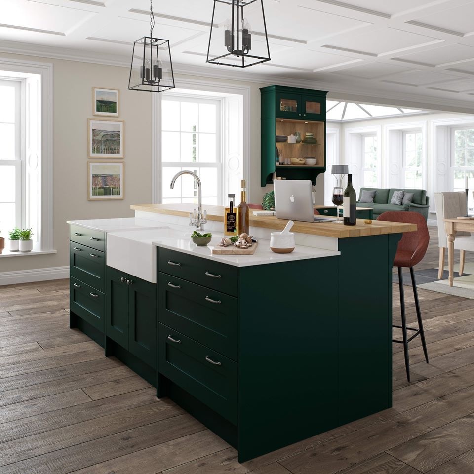Hunter Green from @Masterclasskitc is definitely one of our favourite colours that was launched in 2019, it works beautifully in a contemporary kitchen mixed with warm shades of grey. Pictured Marlborough in Hunter Green #kitchencolours #kitchendesign #KitchenTalk