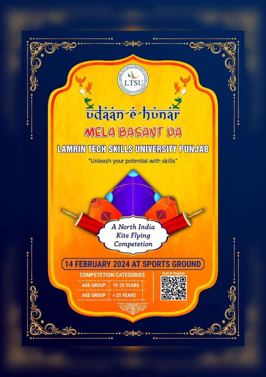 🪁 Exciting Announcement from Lamrin Tech Skills University, Ropar Punjab! 🌟 Join us for "Udaan-e-Basant - Mela Basant Da," a North India Kite Flying Competition on 14th Feb 2024 at the sports ground in LTSU. #LTSU #KiteFlyingCompetition #SkillsUnleashed #RoparEvents 🌬️🎉