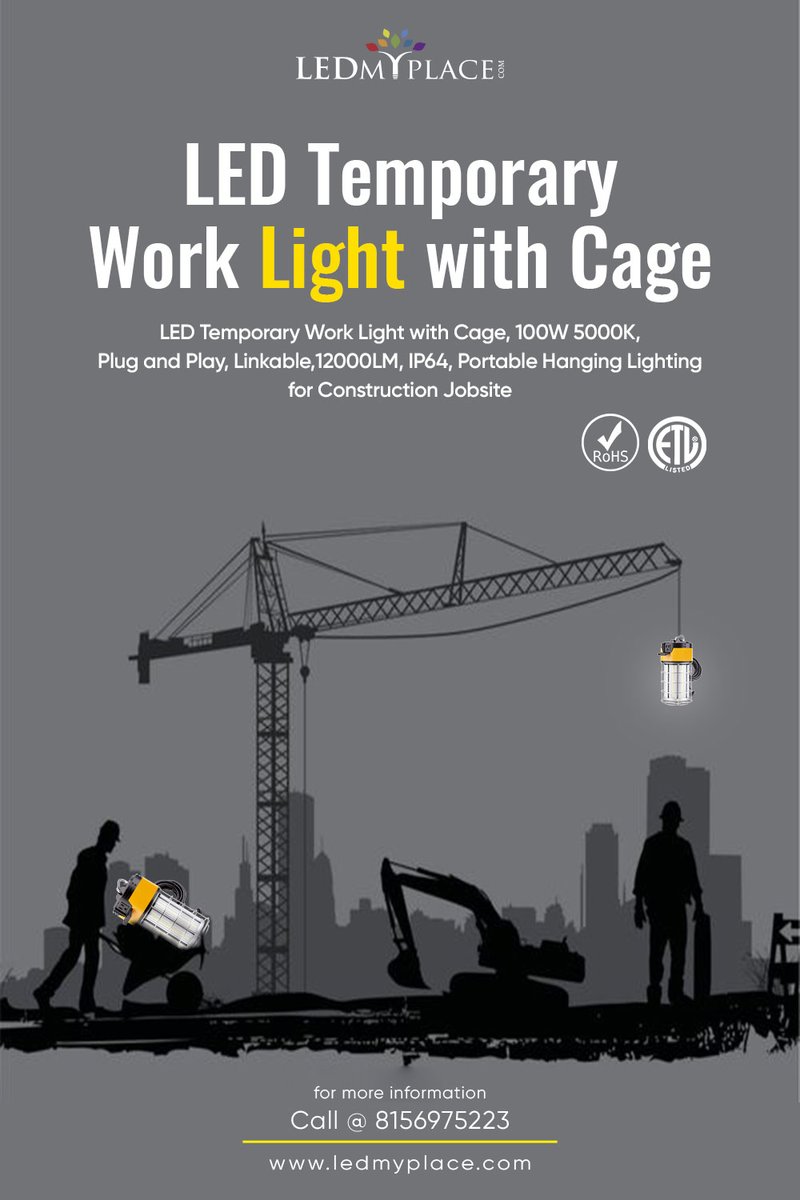 Get LED Temporary Work Light with Cage #LEDTemporaryWorkLightwithCage #LEDStringWorkLights #ConstructionLights for more info: ledmyplace.com/products/100w-…