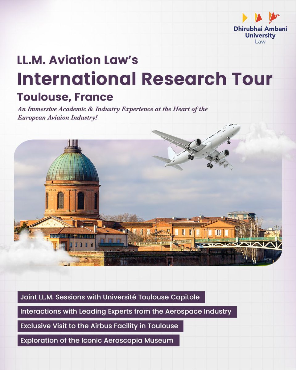 Trimester I of the LL.M. Aviation Law at Dhirubhai Ambani University concludes. Next, a mandatory research tour to Toulouse with Université Toulouse 1 Capitole, including Airbus A350 assembly and Aeroscopia, connecting aviation law with real world practice. #DAUSchoolOfLaw #LL.M